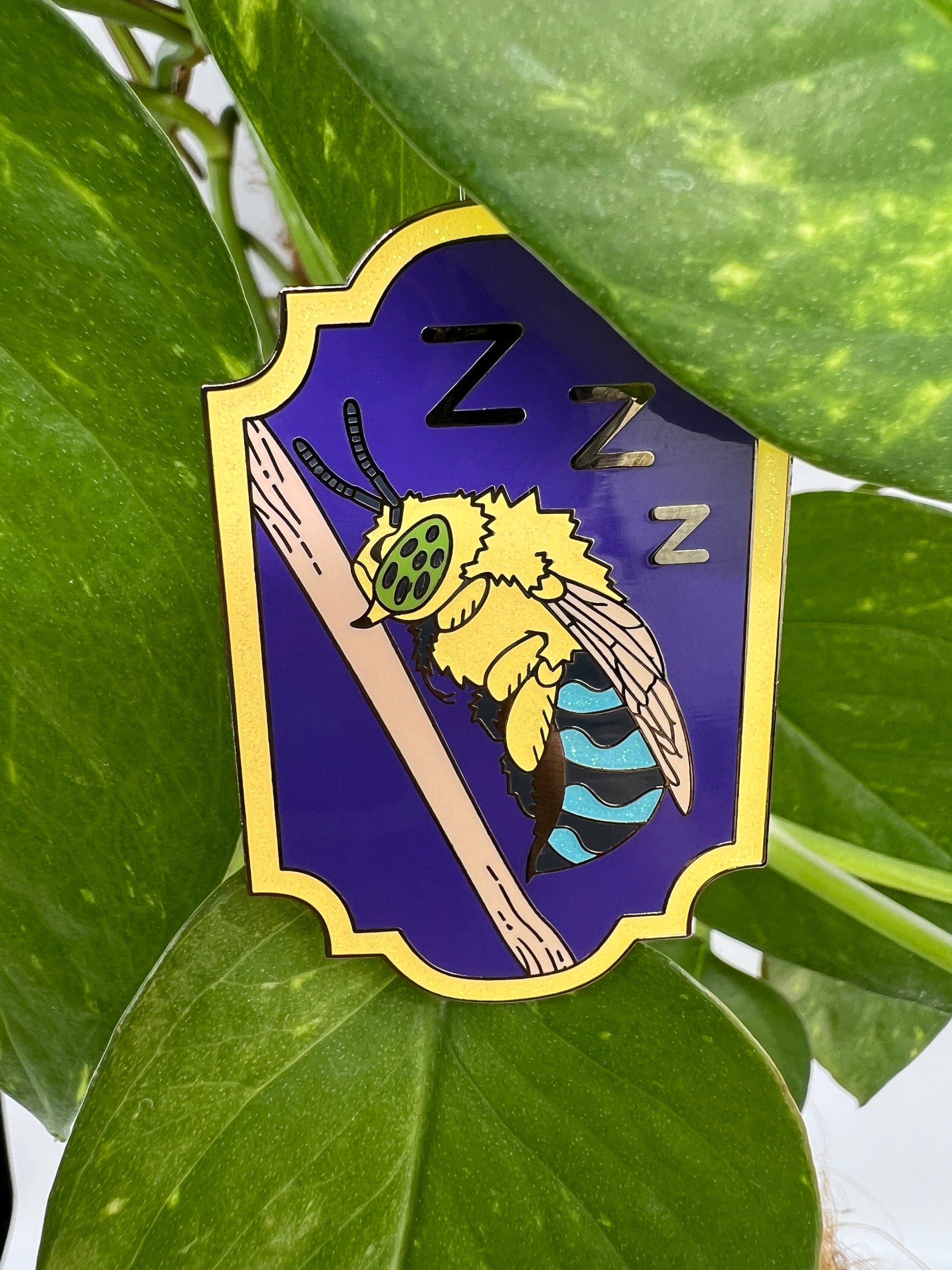 Sleeping Blue-banded bee pin