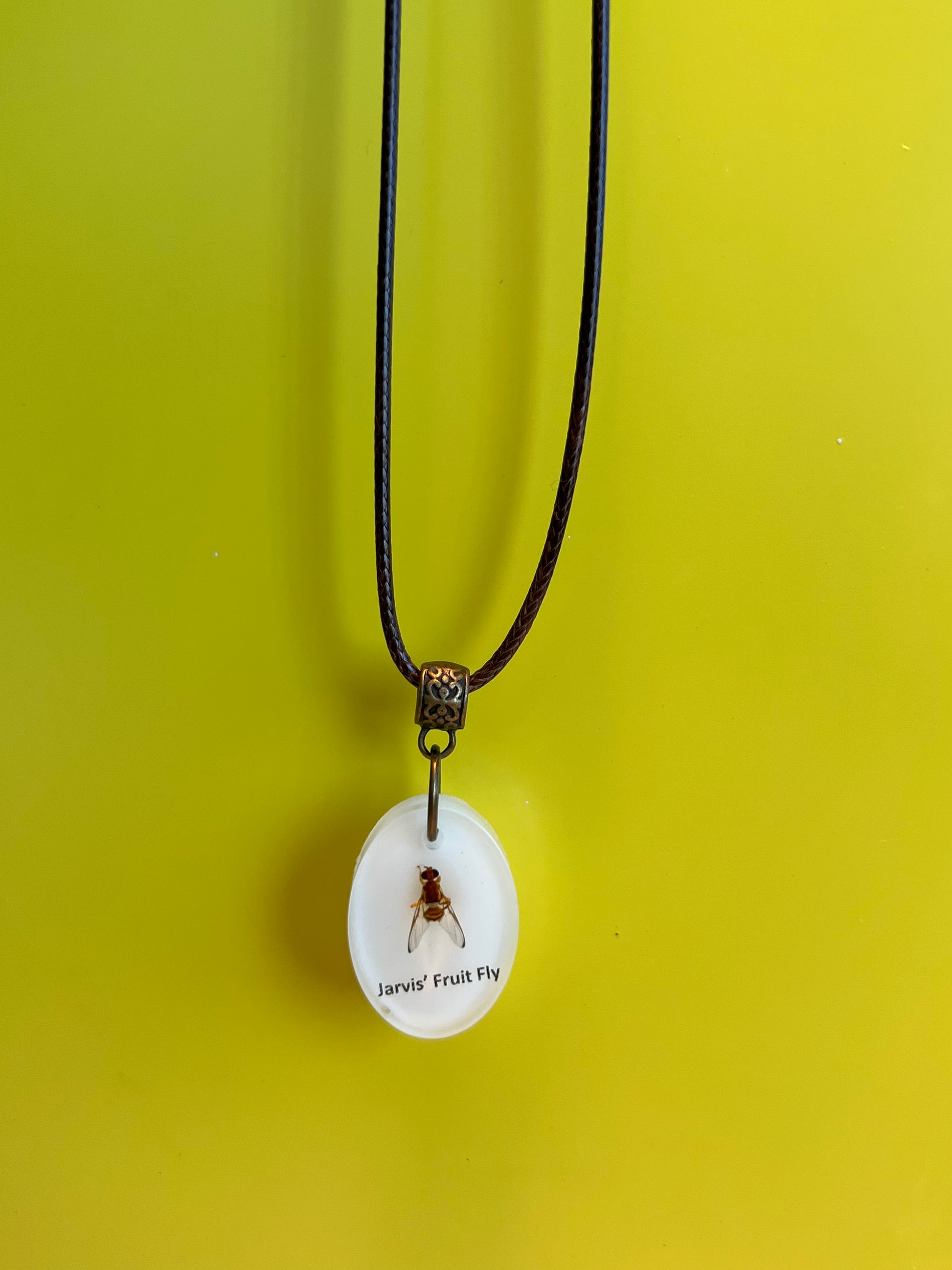 This pendant was proudly handcrafted and designed by me in Australia. It has a real Jarvis' Fruit Fly embedded in a non-toxic resin and it GLOWS IN THE DARK!