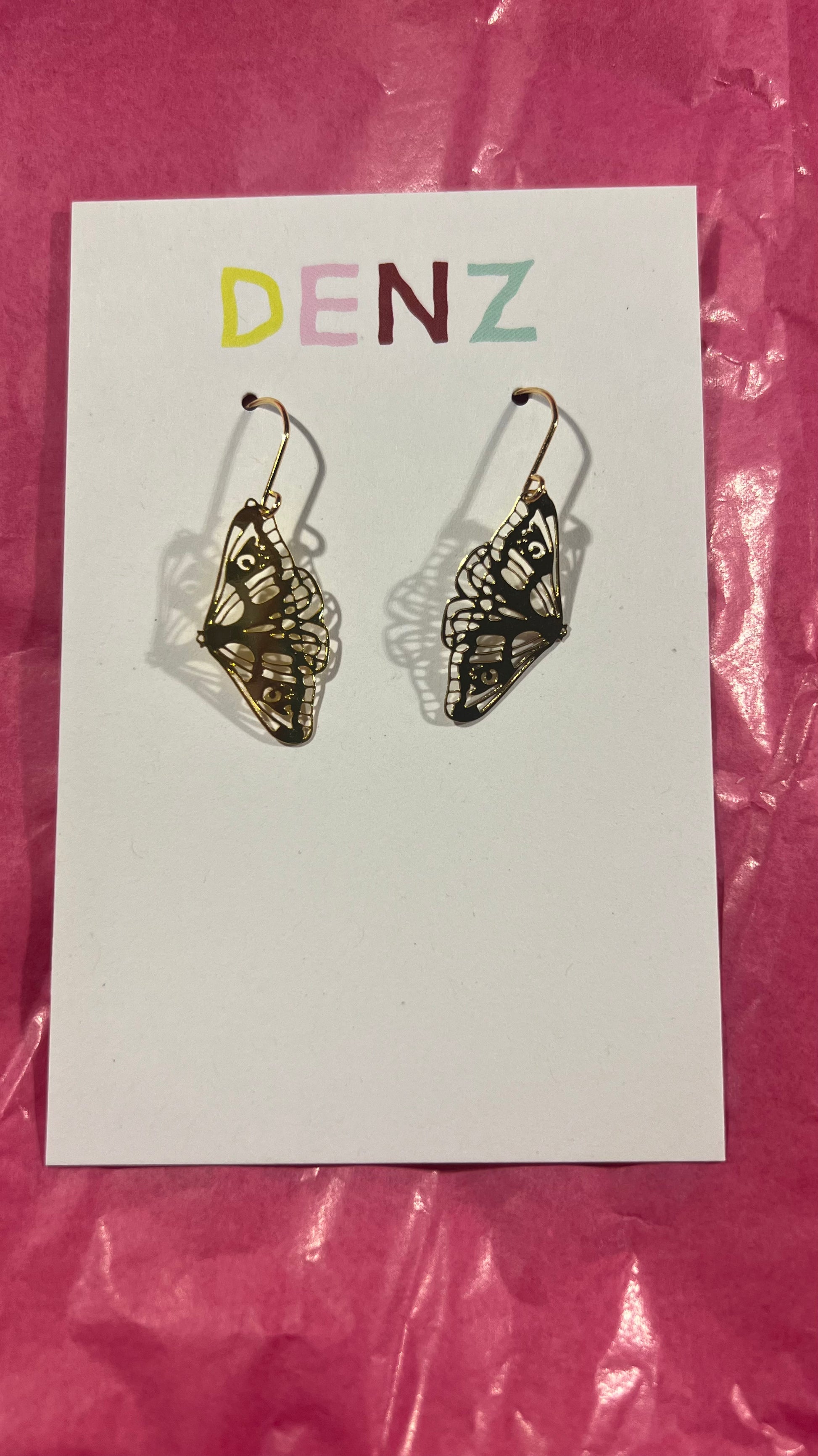 Moths in Gold ir Silver- super lightweight - super awesome statement earrings - not for the dull! Moths dangles made from recycled plated stainless steel. With plated surgical steel hooks.