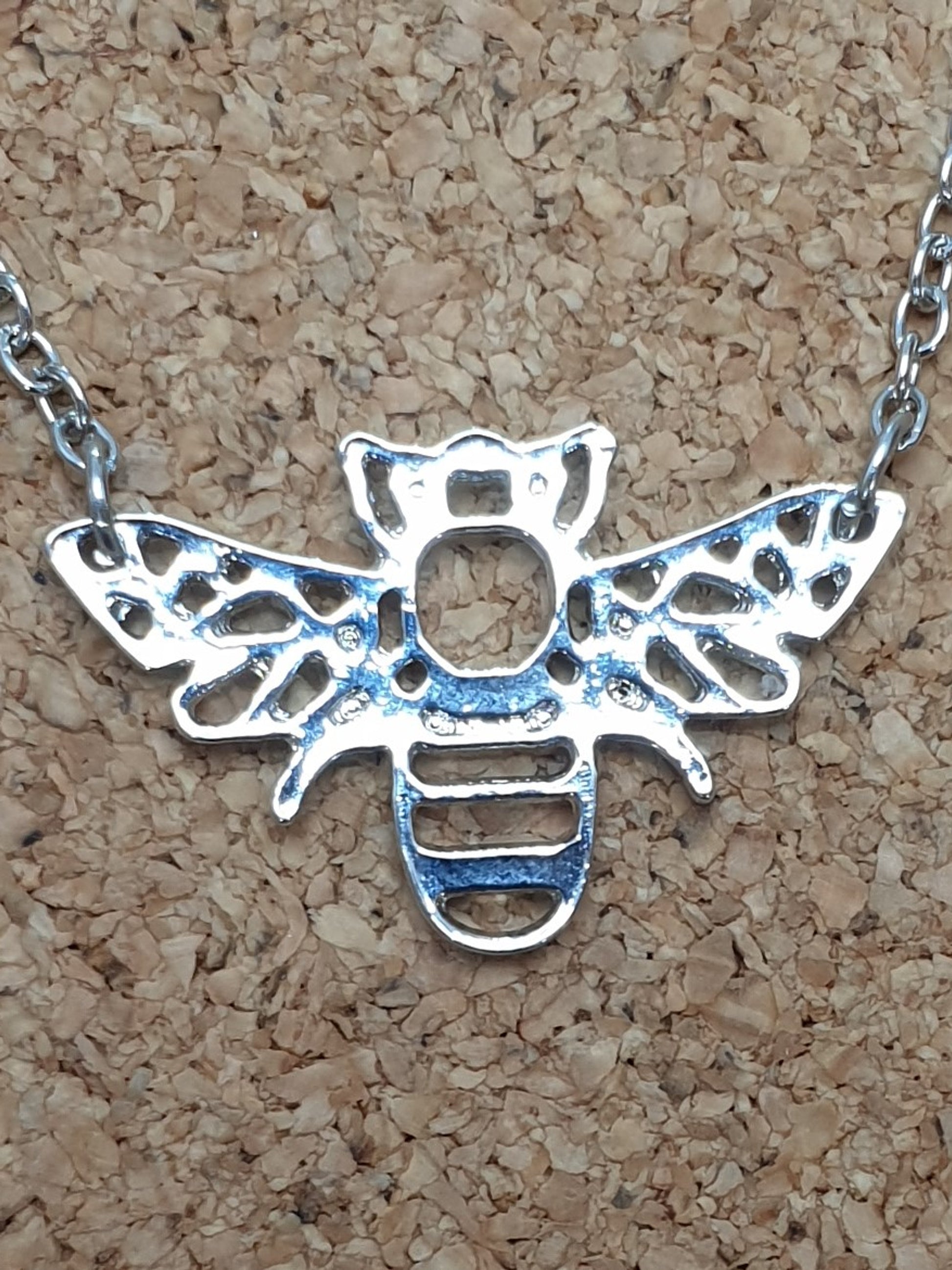 This beautiful necklace has been made with a silver tone bee alloy charm and chain.